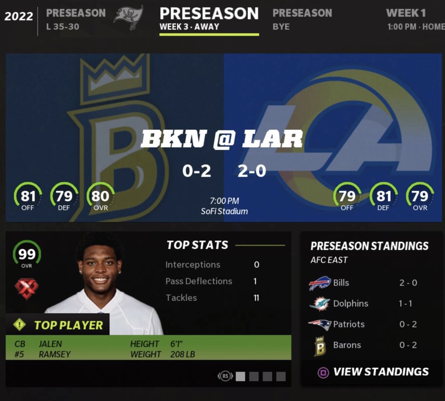 Brooklyn Barons (0-2) @ Los Angeles Rams (2-0)