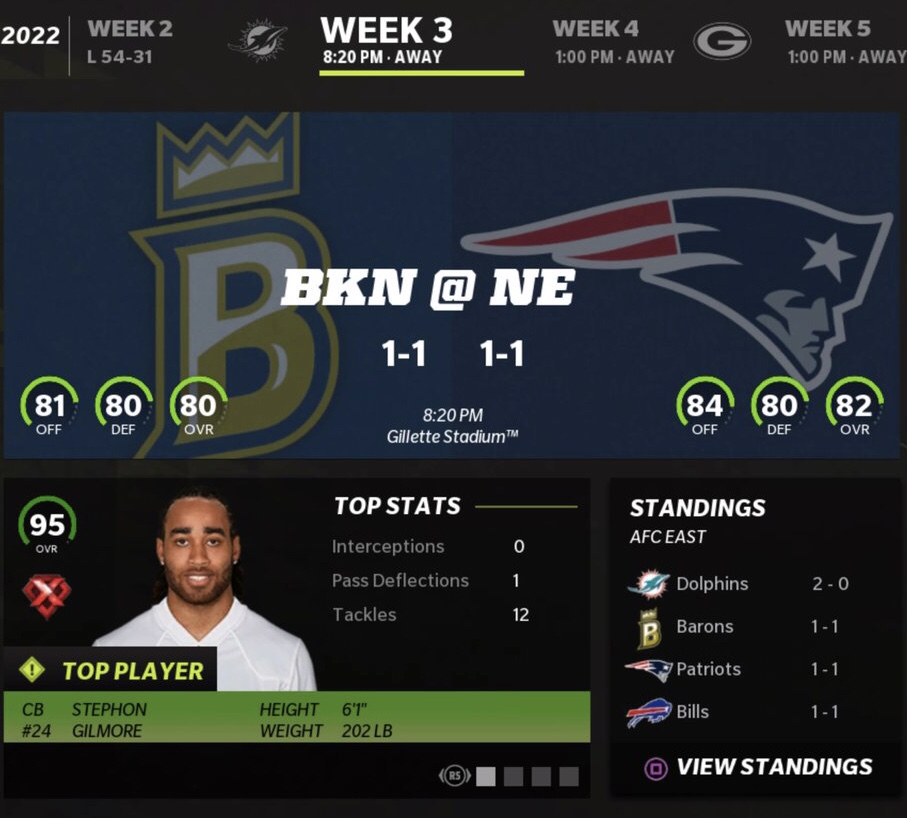 Madden 22 Simulation – 2022 Season – Regular Season Week 3 @ Patriots