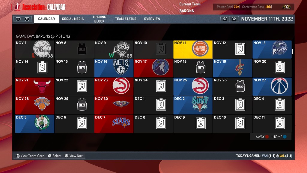 2K22 Expansion Simulation – 2022 Season – Barons @ Pistons