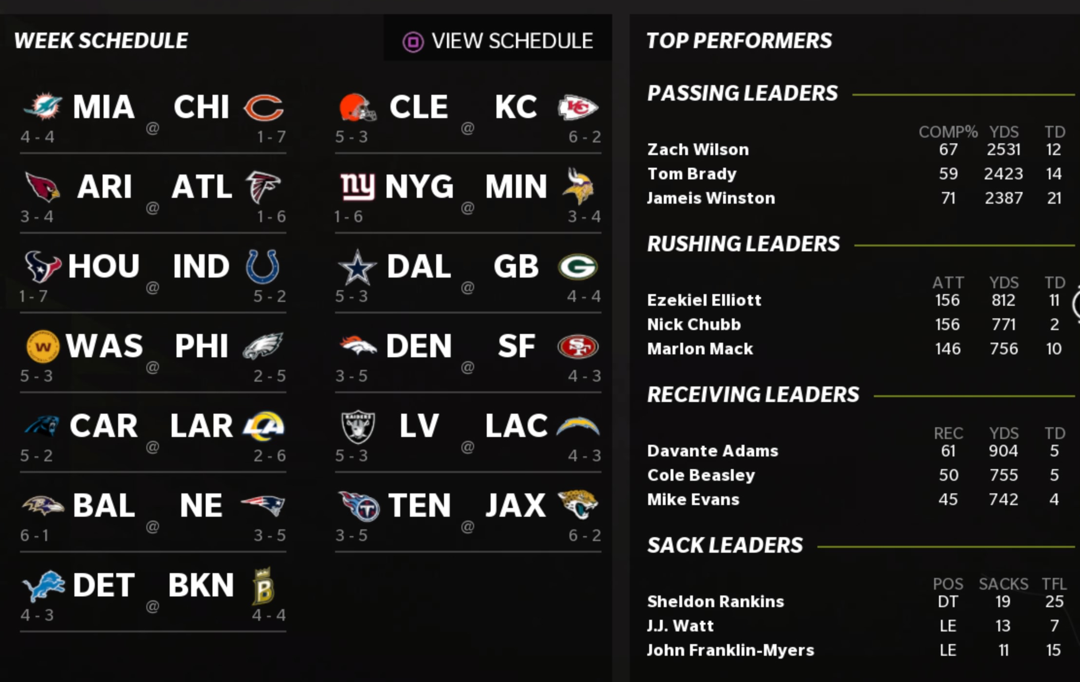 League Schedule & Top Stats