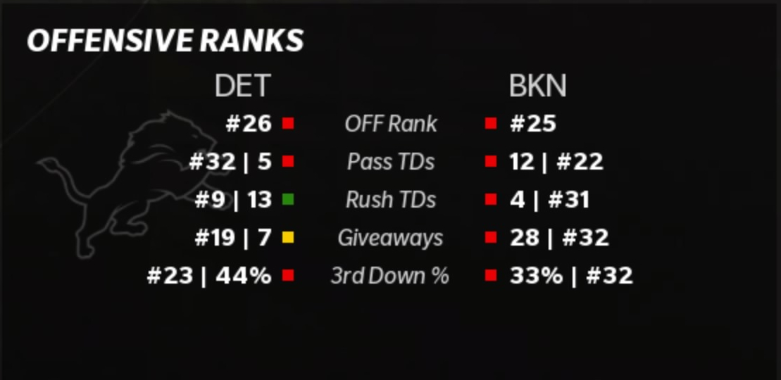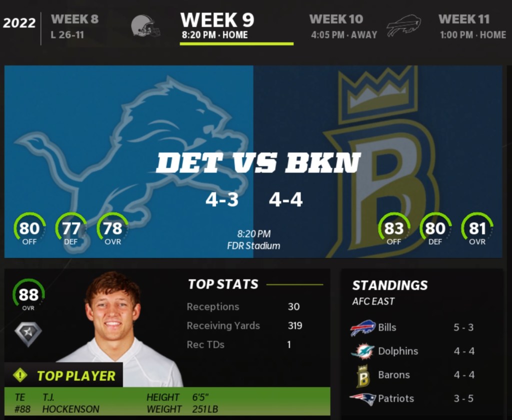 Brooklyn Barons (4-4) vs Detroit Lions (4-3)