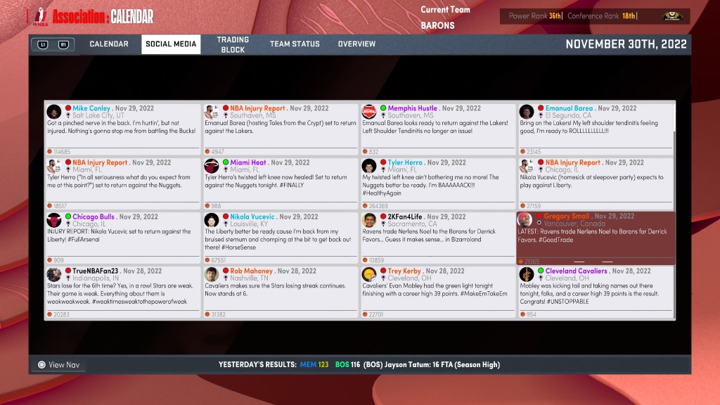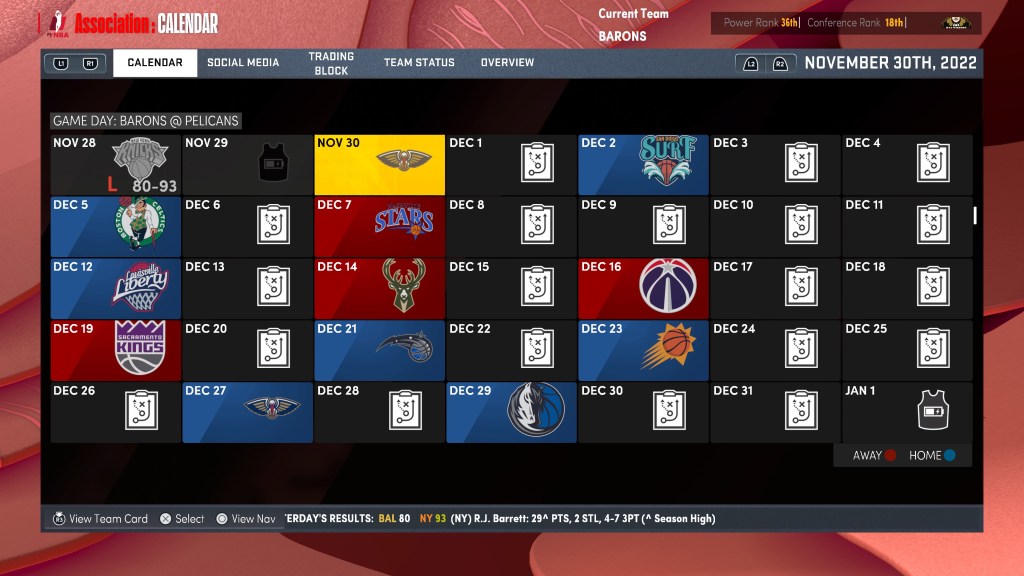 2K22 Expansion Simulation – 2022 Season – Barons @ Pelicans
