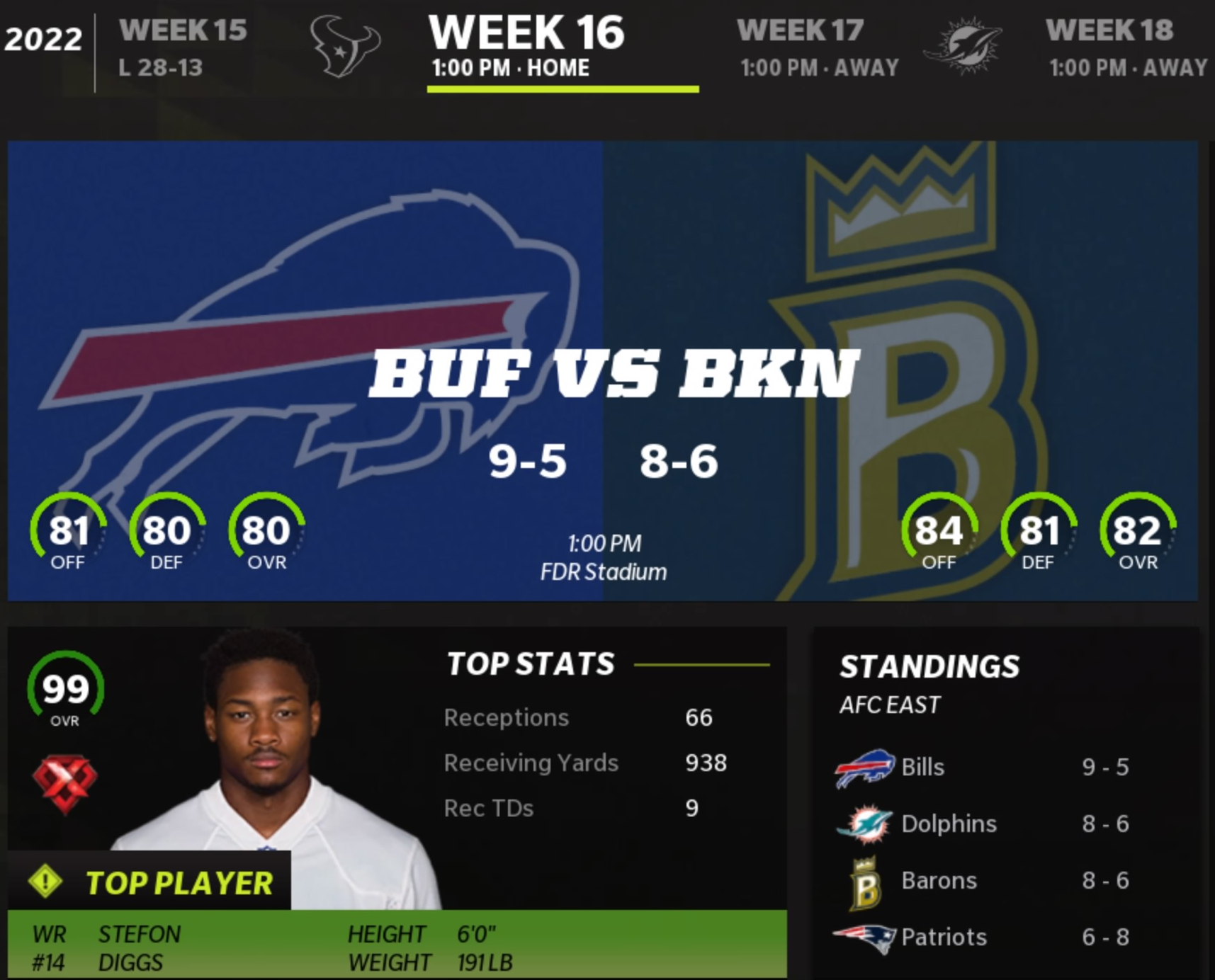 Brooklyn Barons (8-6) vs Buffalo (9-5)