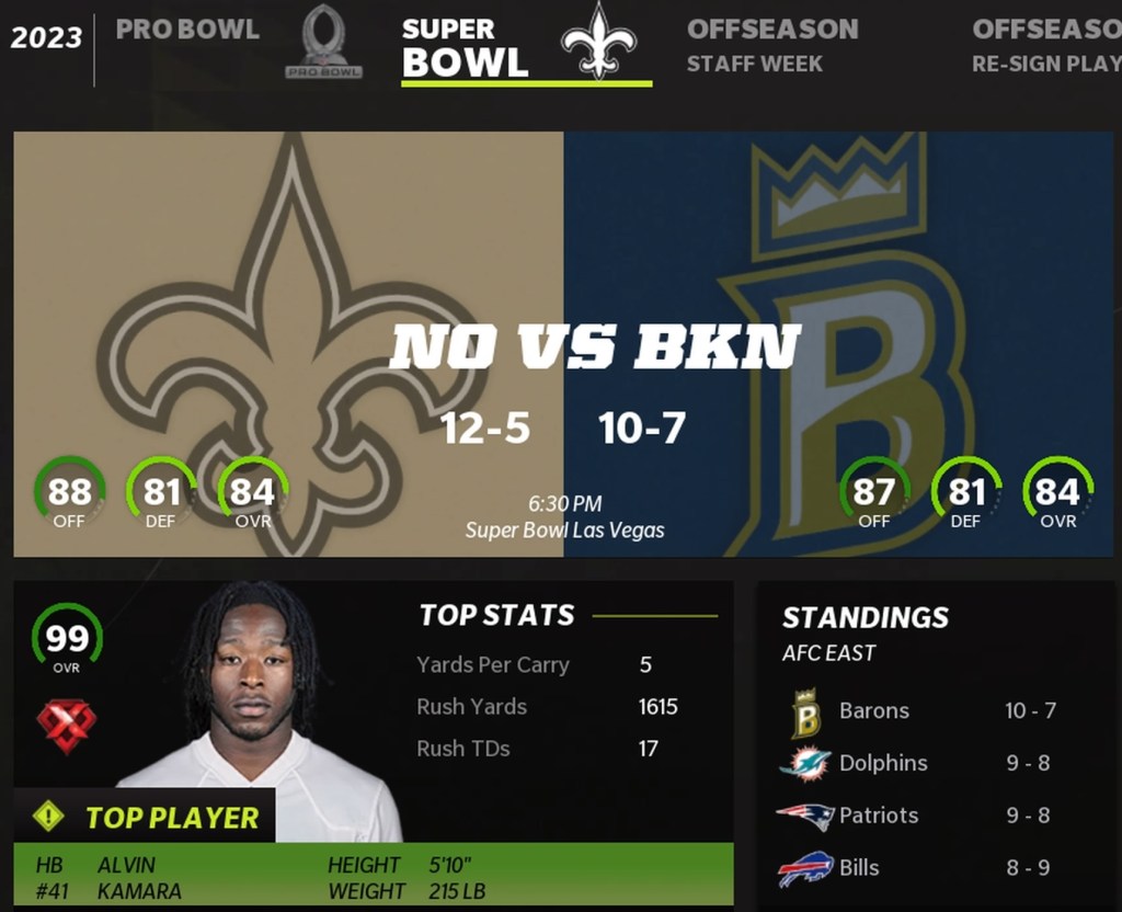 Brooklyn Barons (10-7) vs New Orleans Saints (12-5)