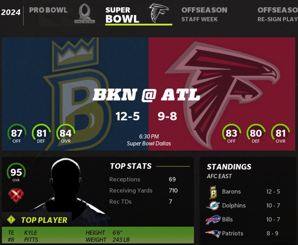 Brooklyn Barons (12-5) vs Atlanta Falcons (9-8)