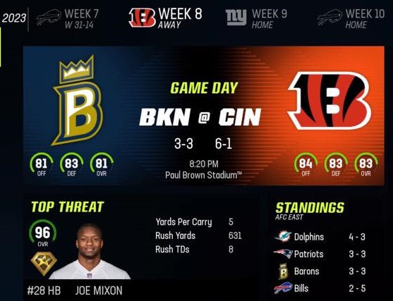 Brooklyn Barons (3-3) vs Cincinnati Bengals (6-1)