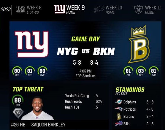 Brooklyn Barons (3-4) vs New York Giants (5-3)
