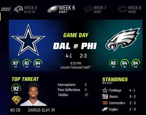 Dallas Cowboys (4-1) vs Philadelphia Eagles (2-3)