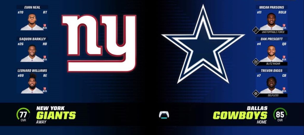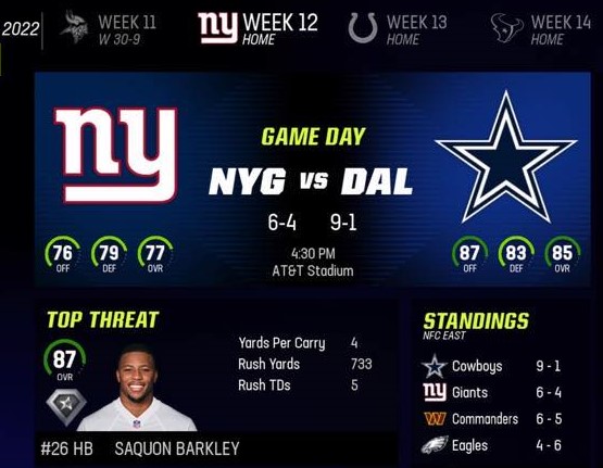 Dallas Cowboys (9-1) vs New York Giants (6-4)