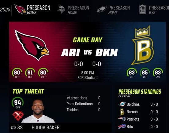 Brooklyn Barons (0-0) vs Arizona Cardinal (0-0)