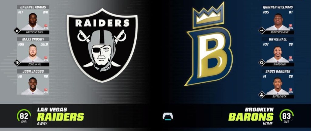 One thought on “Madden 23 Sim – 2026 Season – Week 2 – Barons vs Raiders