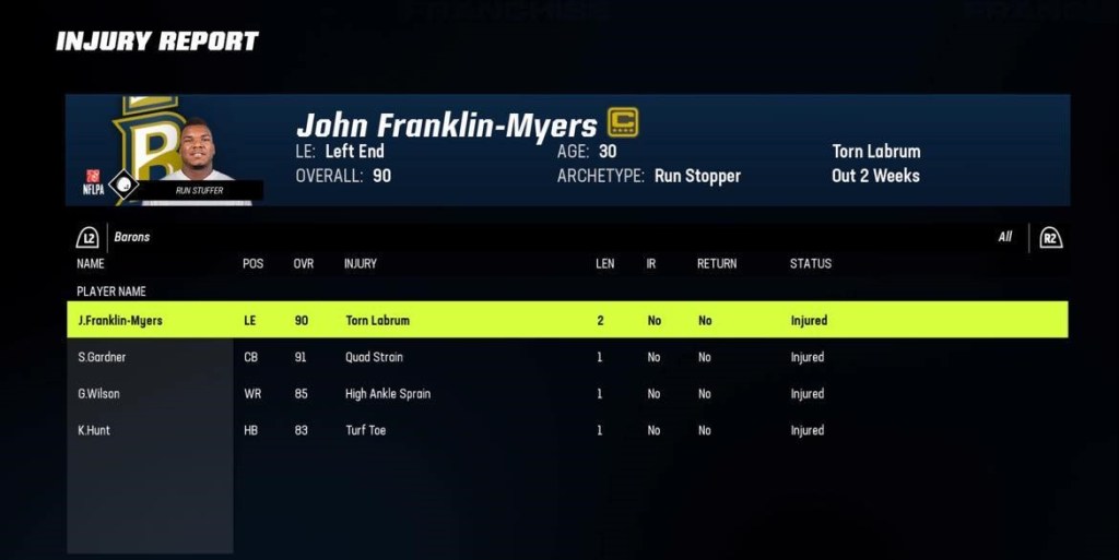 Barons continue the homestand against another division rival Miami. Brooklyn are now at the top of the East division at 5-2 after a win against New England in Week 7. Brooklyn heads into this matchup with 4 starters out this week with injuries.